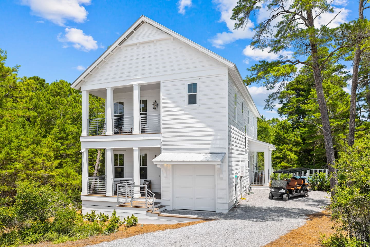 Welcome to The Darling Grouper, your family’s happy place on the peaceful west end of 30A! This stunning new 5-bedroom home sleeps 12 and has it all - private heated* pool, dreamy outdoor spaces, and a quiet wooded cul-de-sac location perfect for families. Just ½ mile (less than a 1-minute golf cart ride) to the beach and close to great restaurants, bars, and live music - your perfect mix of family fun and coastal relaxation awaits!
